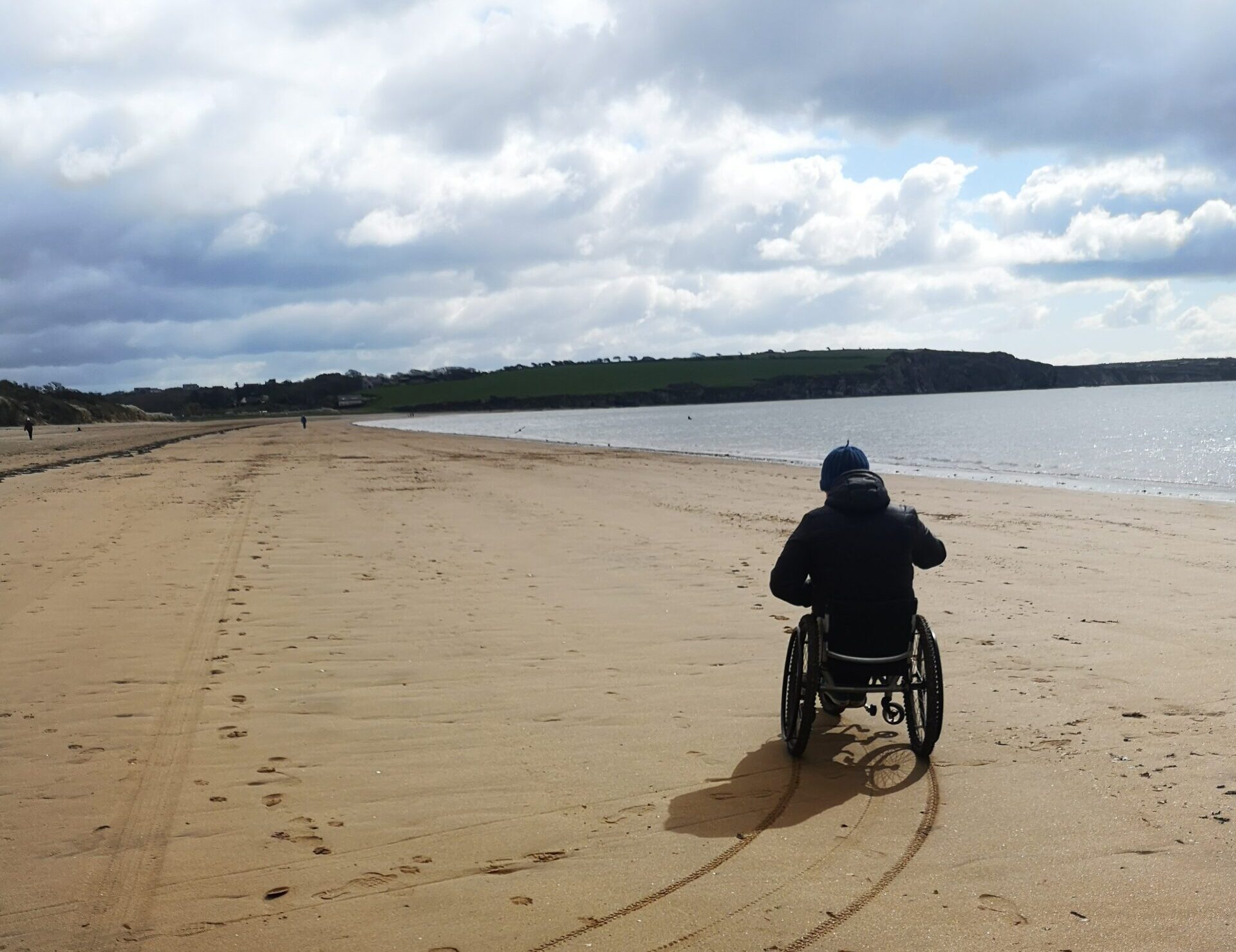 While we’re waiting to see a roll-out of access mats & boardwalks along our coastline to help wheelchair users experience beach days like everyone else, Duncannon beach is our favourite for access. During non-peak times, we drive onto the beach & make use of the compact sand with our clip-on wheelchair motor. Refurbished wheelchair-accessible toilets are located at the lifeguard hut beside an accessible parking bay.