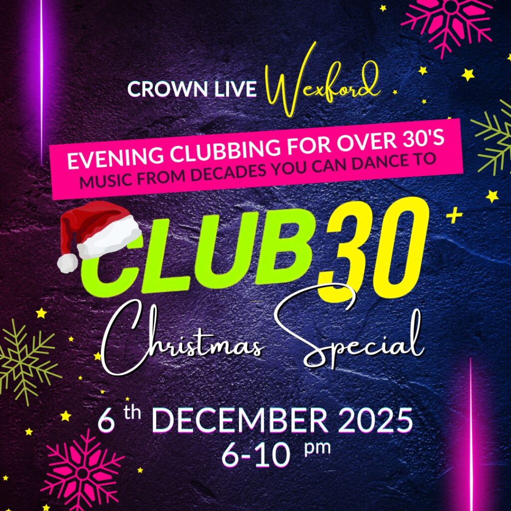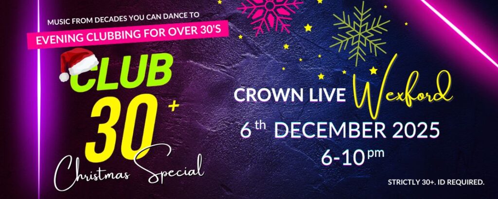 CLUB 30+ is coming back to Crown Live, Wexford on December 6th 2025 for a Christmas Special!