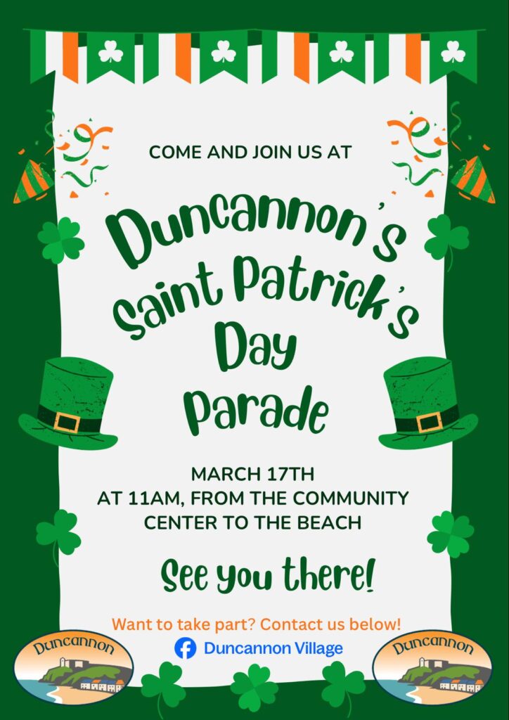 Duncannon Village Renewal Committee are organising Duncannon’s Saint Patrick’s Day Parade on Tuesday the 17th of March at 11am.