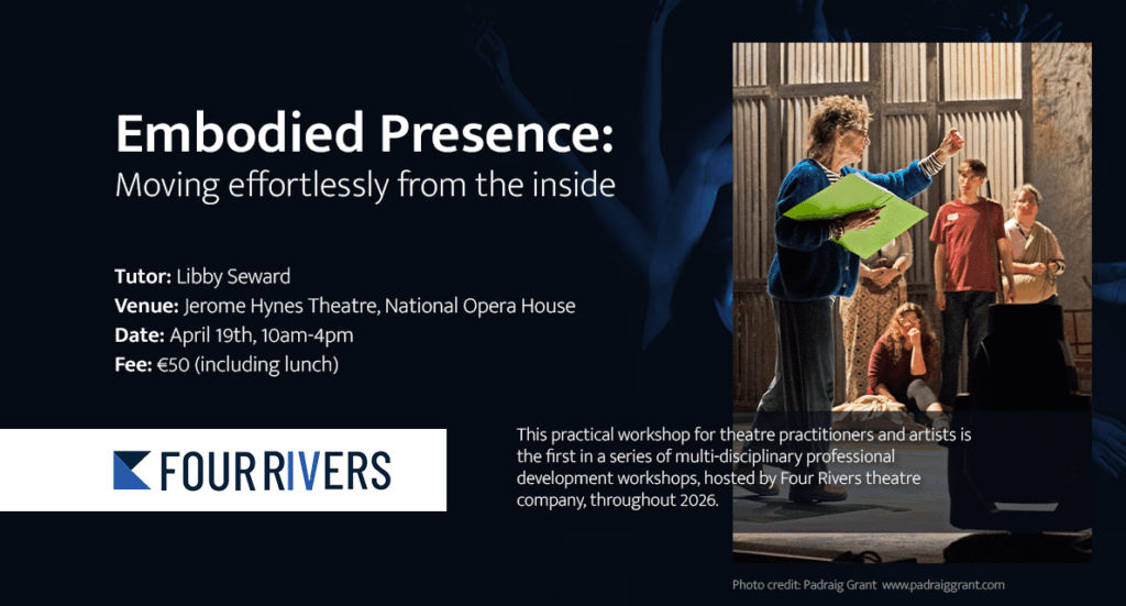 This practical workshop for theatre practitioners and artists is the first in a series of multi-disciplinary professional development workshops, hosted by Four Rivers theatre company, throughout 2026. https://www.nationaloperahouse.ie/whats-on/embodied-presence