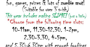 Join us at Craft Central in New Ross for our annual Halloween Fun for kids! Held on 31st October each year, children will make a treat bag to hold all the sweets they win in the games, make glow in the dark slime to bring home, visit out Spooky “Bat Cave” and enjoy the hands-IN experience of “Zombie Snot”!