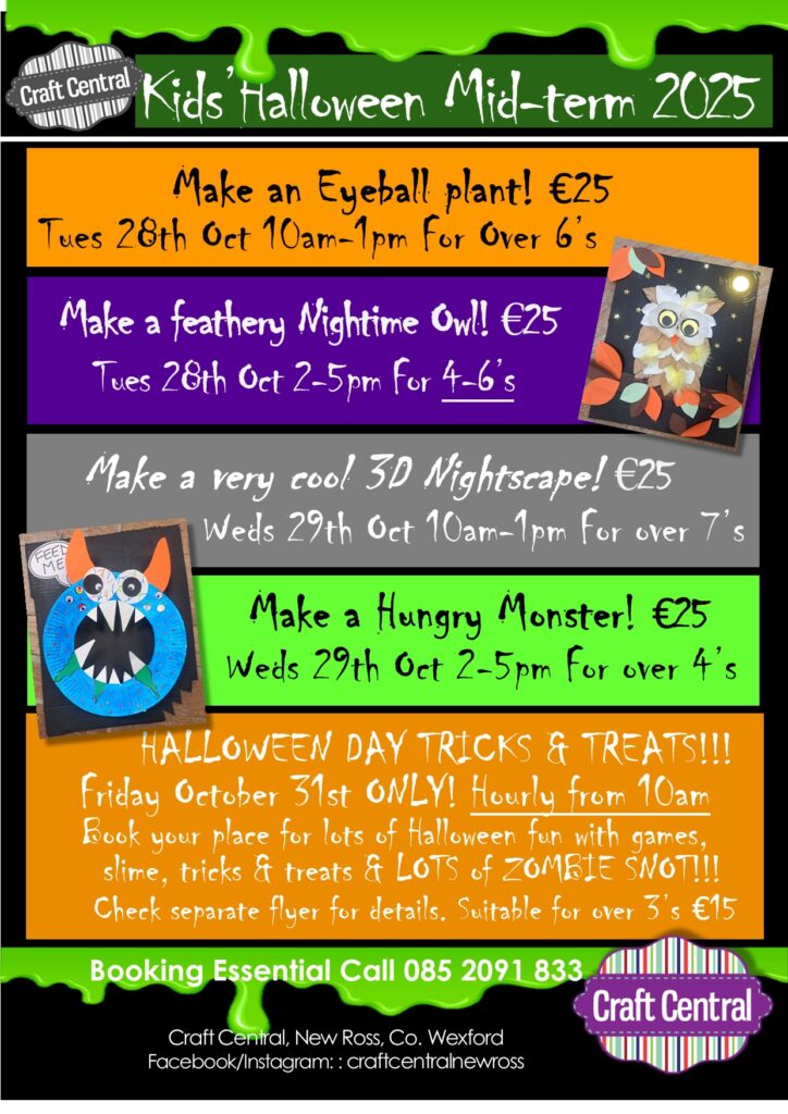 Arty Crafty fun for kids from 4-12years @ Craft Central in New Ross.