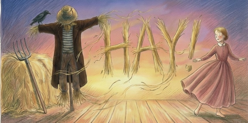 There is only one word used in our show – it’s ‘Hay!’ Like the stuffing in Geenie’s scarecrow, ‘Hay!’ like the sound she makes when he comes to life and ‘Hay!’ when he sees all the wonders of the natural world for the first time. Only one word but so many meanings in a show about growing up in the heart of the countryside and discovering that you don’t have to stay stuck in the mud – you can live your dreams, spread your wings and fly like the birds. A highly accessible show filled with music, clowning, song and dance.