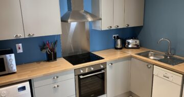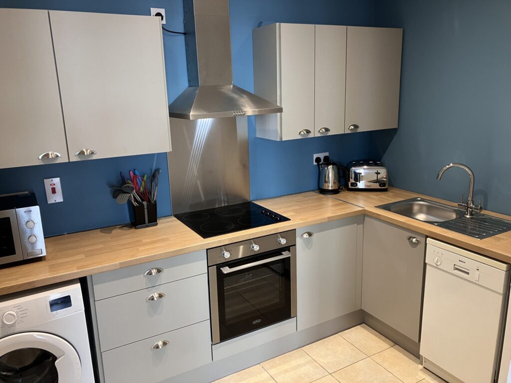 A spacious living area – sitting and dining space open-plan to the kitchen , a desk/work space, smart TV & wifi.