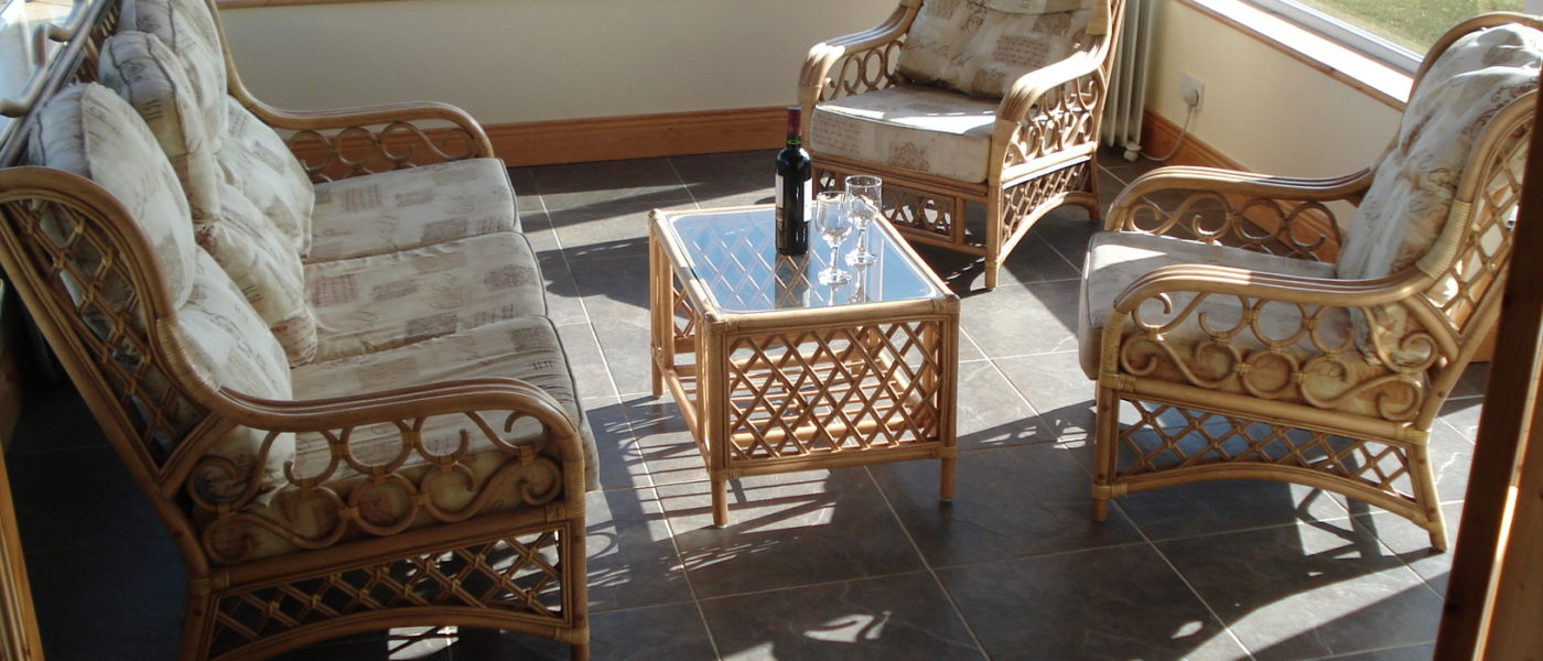 A super holiday bungalow within a gated development that sleeps six (in three seperate bedrooms) set just minutes from Helens Bay golf resort and a long sandy beach (7 min walk away). Open fire in living room with satellite TV/video. House features large sun-room with cane furniture which catches sun from early morning and opens out to a sheltered south-facing patio. Sun-room is the room guests are drawn to where you can relax and read a book as the room absorbs heat from the available sun. Some guests have loved its wealth of light and spent their holiday painting and sketching.