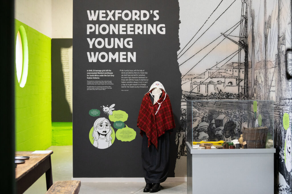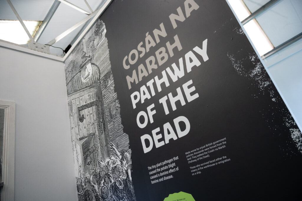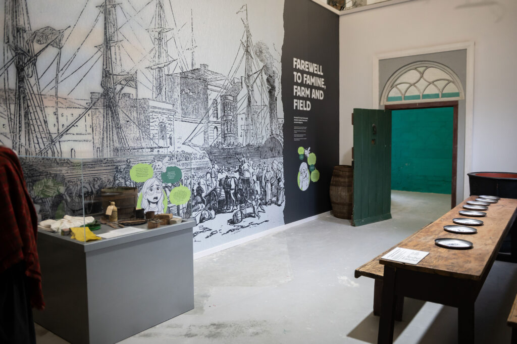 The exhibition traces Ireland’s agricultural history from the Great Irish Famine through to modern times, highlighting Johnstown Castle’s role during the Famine and the later impact of Teagasc in advancing Irish farming practices.