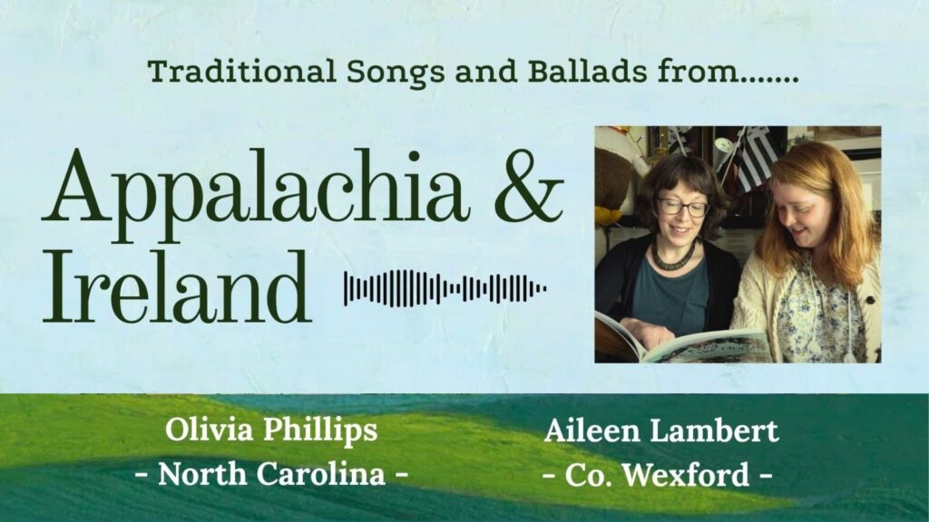 Discover the ballad traditions of Ireland and Appalachia with Aileen Lambert and Olivia Phillips. Their performance explores songs shared across both regions, comparing different versions from their localities of County Wexford and North Carolina and highlighting recurring themes of love, loss, emigration, murder, and humour. From ‘Pretty Saro’ to ‘The Streams of Bunclody’, join them for a unique musical journey that celebrates the enduring connections between these rich song traditions.