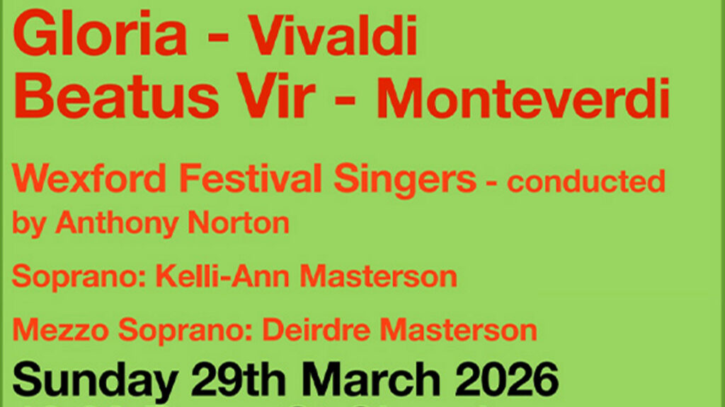 Wexford Festival Singers look forward to welcoming the people of Wexford and beyond to our beautiful concert on Sunday 29th March 2026, 7.30pm in the Church of the Immaculate Conception, Rowe St, Wexford.