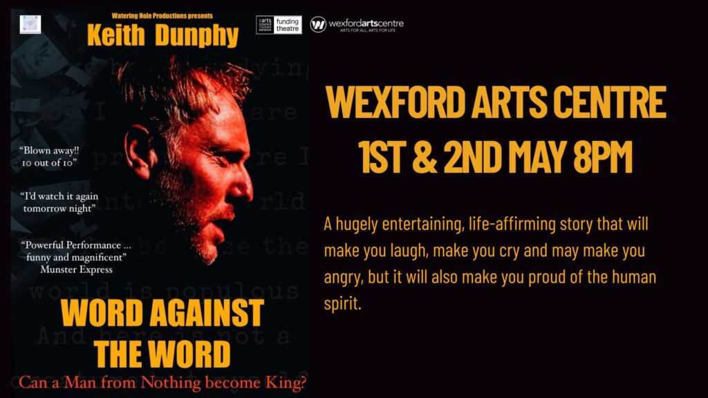 Keith left Waterford in 1996 to train at the Royal Academy of Dramatic Art in London. Funded by his hometown, he dreams of performing Shakespeare in his own accent. Word Against The Word is a one-man play exploring how a working class Irish actor with dyslexia navigates show business, hoping but never knowing if he’ll ever get to play the king that once visited Waterford – Richard II.